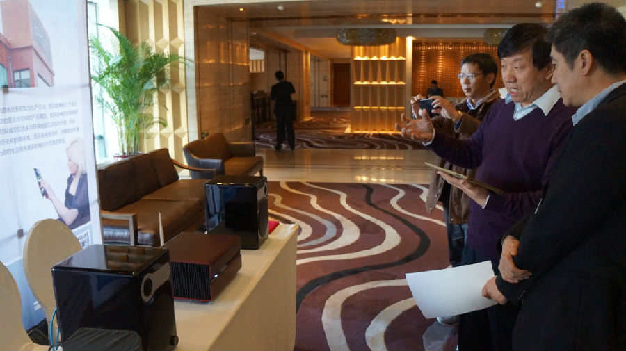 在2013闪联峰会的产品和技术方案展示环节中,闪联安排五家具有代表性的企业做场外演示。孙育宁博士还来到昆河音响的展位和梅弘夫总经理畅谈,了解HiFi领域的音频互联标准和音频质量。